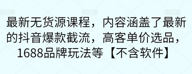 最新无货源课程,内容涵盖了最新的抖音爆款截流,高客单价选品,1688品牌玩法等【不含软件】