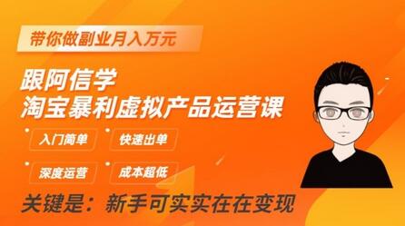 跟阿信学淘宝暴利虚拟产品运营课,入门简单,快速出单,带你做副业月入万元