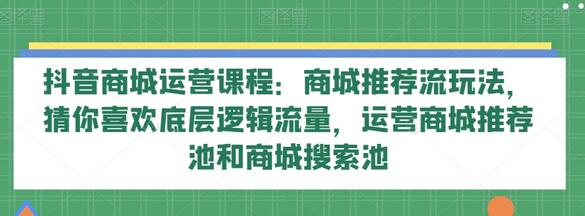 抖音商城运营课程:商城推荐流玩法,猜你喜欢底层逻辑流量,运营商城推荐池和商城搜索池