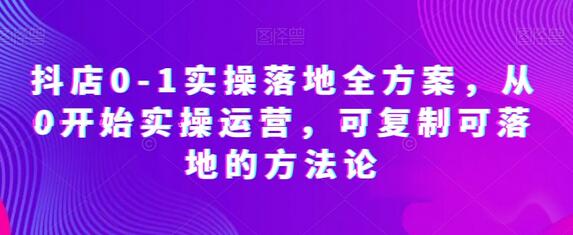抖店0-1实操落地全方案,从0开始实操运营,可复制可落地的方法论