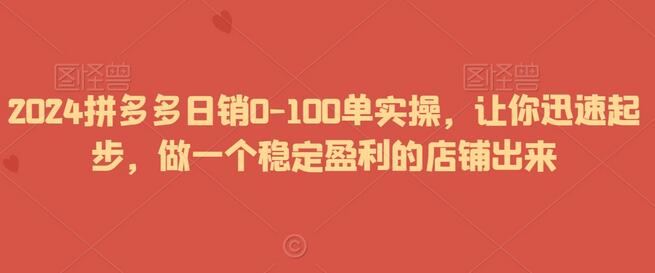 2024拼多多日销0-100单实操,让你迅速起步,做一个稳定盈利的店铺出来