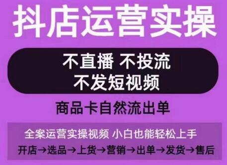 抖店运营实操课,从0-1起店视频全实操,不直播、不投流、不发短视频,商品卡自然流出单