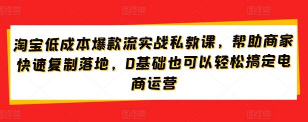 淘宝低成本爆款流实战私教课,帮助商家快速复制落地,0基础也可以轻松搞定电商运营
