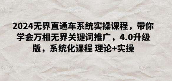 2024无界直通车系统实操课程,带你学会万相无界关键词推广,4.0升级版,系统化课程 理论+实操
