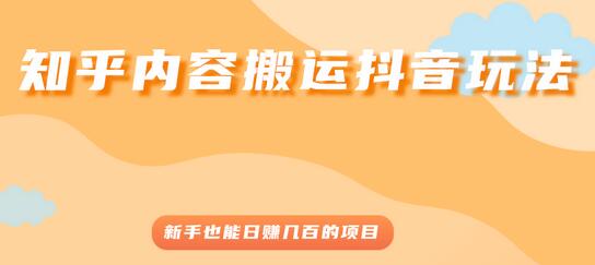 知乎内容搬运抖音玩法,新手也能日赚几百的项目