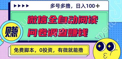 最新微信全自动阅读挂机+国内问卷调查赚钱 单号一天20-40左右 号越多赚越多