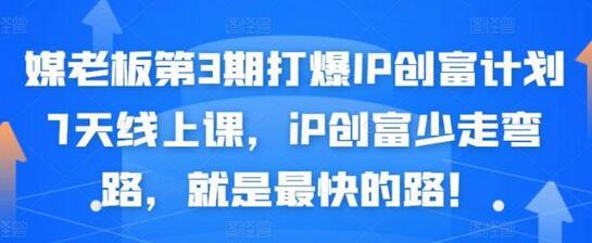 媒老板第3期打爆IP创富计划7天线上课,iP创富少走弯路,就是最快的路!
