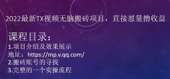 小淘:2022最新TX视频无脑搬砖项目,直接怼量撸收益