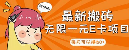【高端精品】最新搬砖无限一元E卡项目,每天可以撸150+多劳多得,可实操