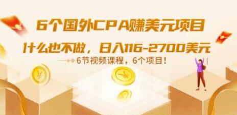 6个国外CPA赚美元项目:什么也不做,日入116-2700美元(6节视频课)