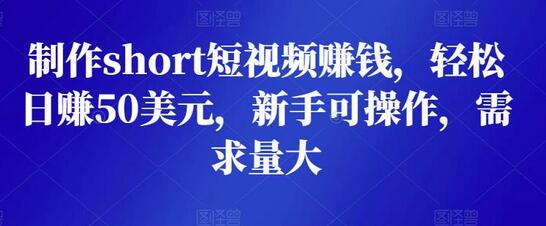 制作short短视频赚钱,轻松日赚50美元,新手可操作,需求量大