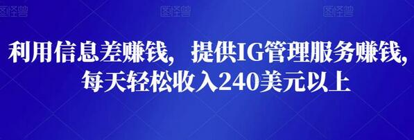 利用信息差赚钱,提供IG管理服务赚钱,每天轻松收入240美元以上