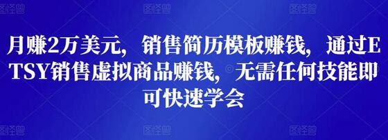 月赚2万美元,销售简历模板赚钱,通过ETSY销售虚拟商品赚钱,无需任何技能即可快速学会