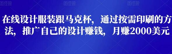 在线设计服装跟马克杯,通过按需印刷的方法,推广自己的设计赚钱,月赚2000美元