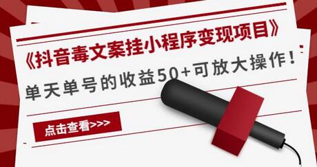 《抖音毒文案挂小程序变现项目》单天单号的收益50+可放大操作!