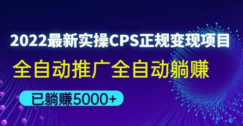 2022最新实操CPS正规变现项目,全自动推广全自动躺赚,已躺赚五千多