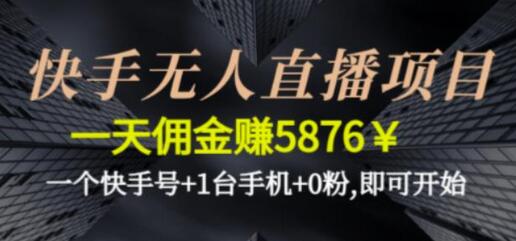 快手无人直播项目,一天佣金赚5876¥一个快手号+1台手机+0粉即可开始