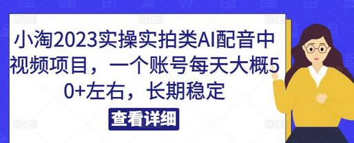 小淘2023实操实拍类AI配音中视频项目,一个账号每天大概50+左右,长期稳定