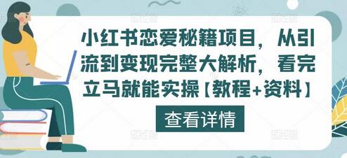 今天分享的是小红书恋爱秘籍引流变现项目,这个项目可以说是很刚需的,也是我们做了一段时间的小副业项目,今天拿出来分享给大家,我让负责人录制了完整版的视频教程,看完能能实操。