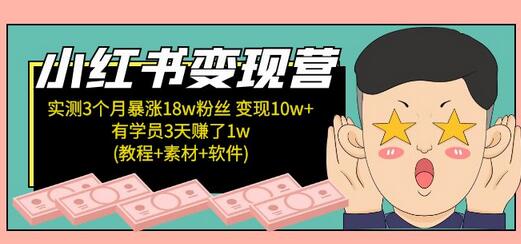 小红书变现营:实测3个月涨18w粉丝 变现10w+有学员3天赚1w(教程+素材+软件)