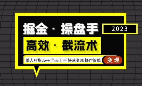 掘金操盘手就是赚流量的钱,通过公司教你的方法去引流,日引100+!在互联网上吃到一口肉,一定也有你的一杯羹!