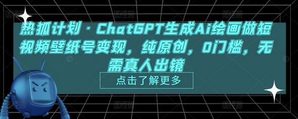 热狐计划·ChatGPT生成Ai绘画做短视频壁纸号变现,纯原创,0门槛,无需真人出镜