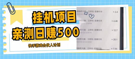 挂机项目最新快手游戏合伙人计划教程,日赚500+教程+软件