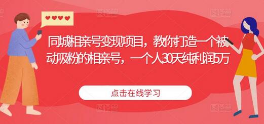 同城相亲号变现项目,教你打造一个被动吸粉的相亲号,一个人30天纯利润5万