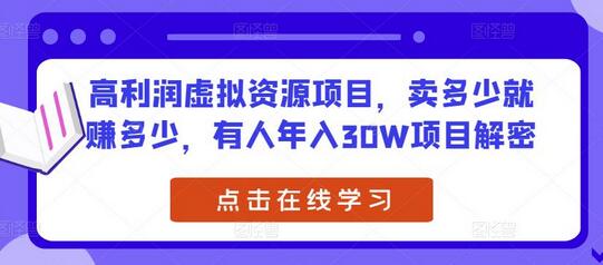 高利润虚拟资源项目,卖多少就赚多少,有人年入30W项目解密