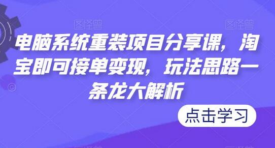 电脑系统重装项目分享课,淘宝即可接单变现,玩法思路一条龙大解析