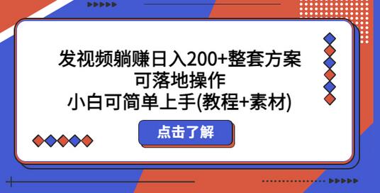发视频躺赚日入200+整套方案可落地操作 小白可简单上手(教程+素材)