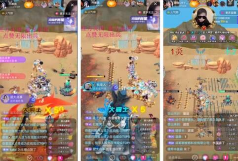 观众输入【炎】【1】或【水】【2】后会自动生成一个基础军队,通过点赞、评论、礼物进行战前军队部署。可以通过【进攻】【撤退】进行部队的控制,通过实时的操作,极限消耗对方阵营的兵力。游戏正上方为攻守方识别,游戏开始时,系统随机分配炎国、水国为进攻防守方。在规定时间内,进攻方未攻下防守方,则攻守方进行转换;若攻守方转换后,攻方未进攻下守方,则守方获得胜利。