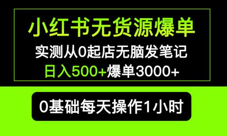 小红书无货源爆单 实测从0起店无脑发笔记 日入500+爆单3000+长期项目可多店