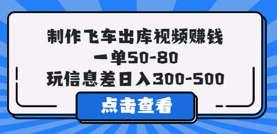制作飞车出库视频赚钱,一单50-80,玩信息差日入300-500