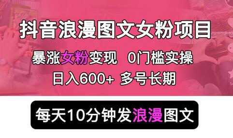 今天分享的是 抖音发浪漫图文项目,流量很离谱,女粉爆涨,正规不擦边,多种变现手段