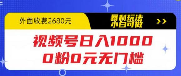 视频号日入1000,0粉0元无门槛,暴利玩法,小白可做,拆解教程【揭秘】