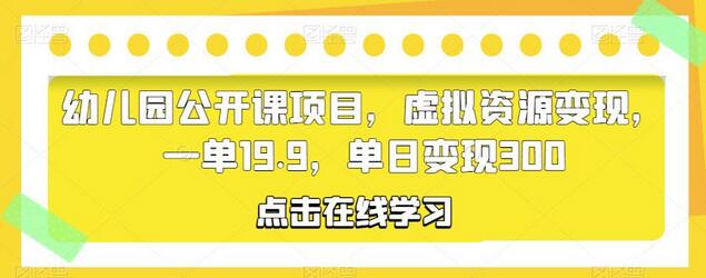 幼儿园公开课项目,虚拟资源变现,一单19.9,单日变现300