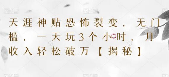 天涯神贴裂变,无门槛,一天玩3个小时,月收入轻松破万