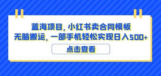 蓝海项目小红书卖合同模板无脑搬运一部手机日入500+(教程+4000份模板)