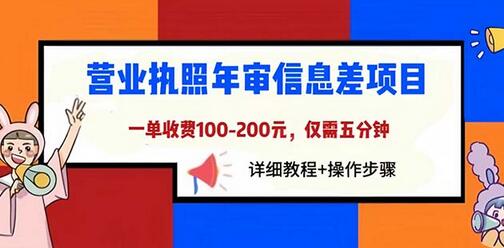 营业执照年审信息差项目,一单100-200元仅需五分钟,详细教程+操作步骤