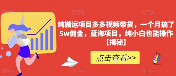 纯搬运项目多多视频带货,一个月搞了5w佣金,蓝海项目,纯小白也能操作