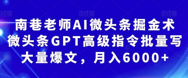南巷老师AI微头条掘金术:微头条GPT高级指令批量写大量爆文,月入6000+