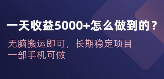 一天收益5000+怎么做到的?无脑搬运即可,长期稳定项目,一部手机可做