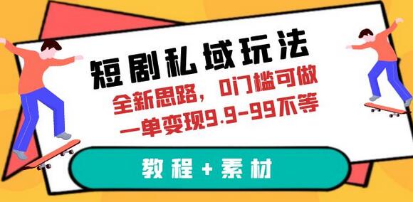 短剧私域玩法,全新思路,0门槛可做,一单变现9.9-99不等(教程+素材)