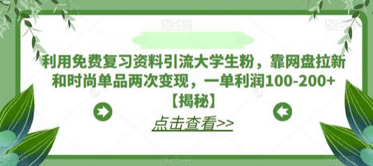 利用免费复习资料引流大学生粉,靠网盘拉新和时尚单品两次变现,一单利润100-200+