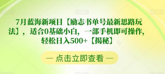 7月蓝海新项目【励志书单号最新思路玩法】,适合0基础小白,一部手机即可操作,轻松日入500+