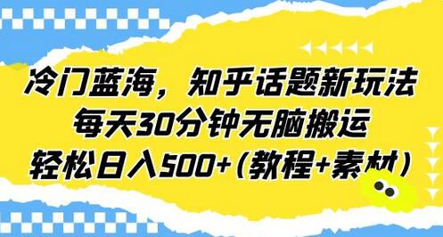 冷门蓝海,知乎话题新玩法,每天30分钟无脑搬运,轻松日入500+(教程+素材)