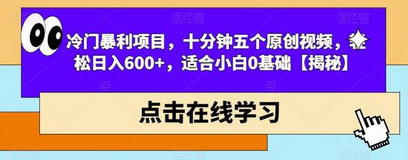 今天给大家分享的项目《冷门暴利项目,十分钟五个原创视频,轻松日入600+,适合小白0基础》