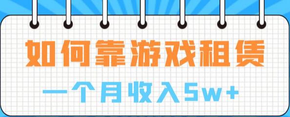 如何靠游戏租赁业务一个月收入5w+