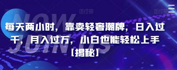 每天两小时,靠卖轻奢潮牌,日入过千,月入过万,小白也能轻松上手